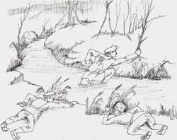 földbe. A dobó kapitány a bigét a lyuk felé keresztbe helyezve, a